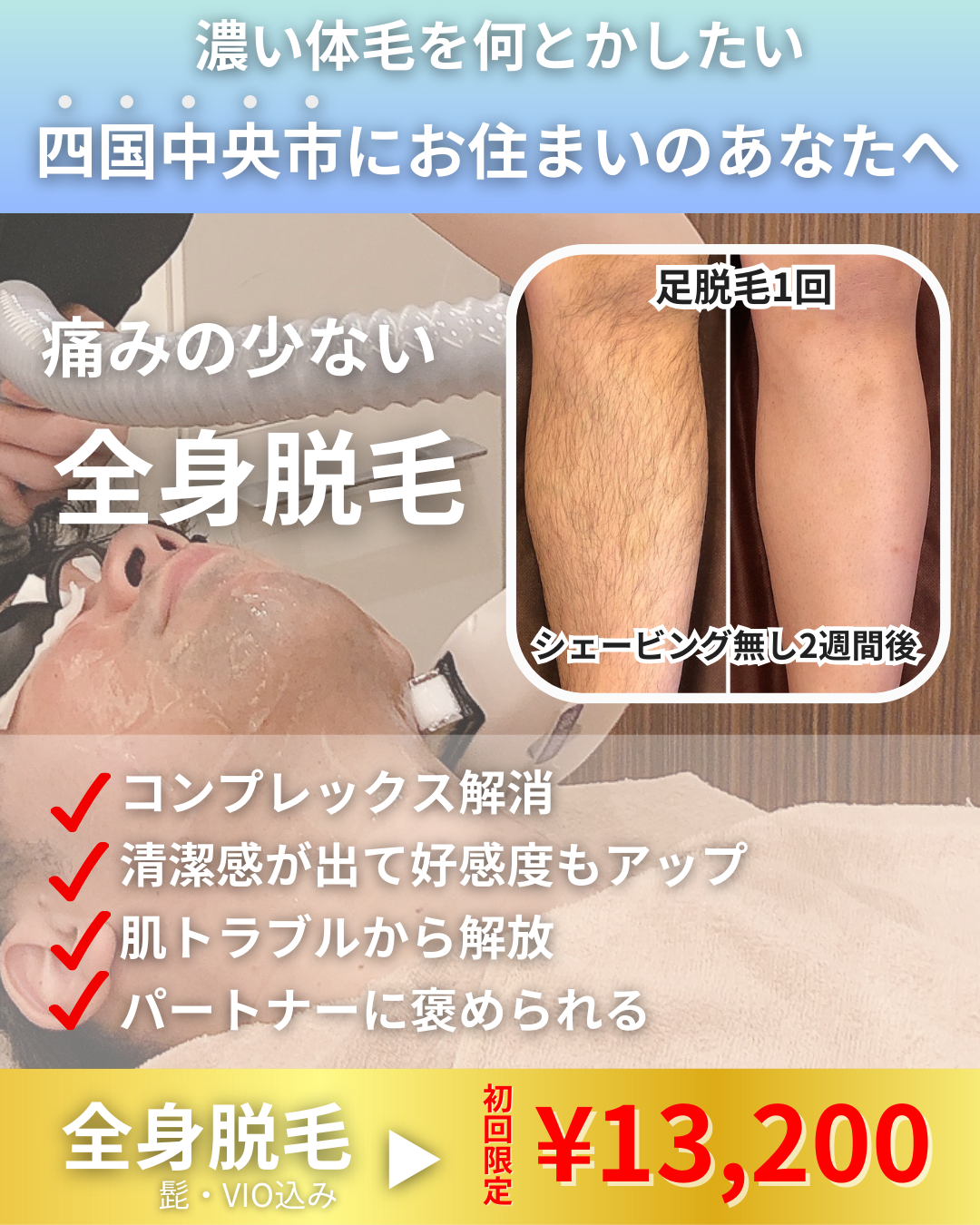 毛質・太さ・密度を考え、脱毛理論に基づいた脱毛だと、施術後すぐに効果を感じることができます。
